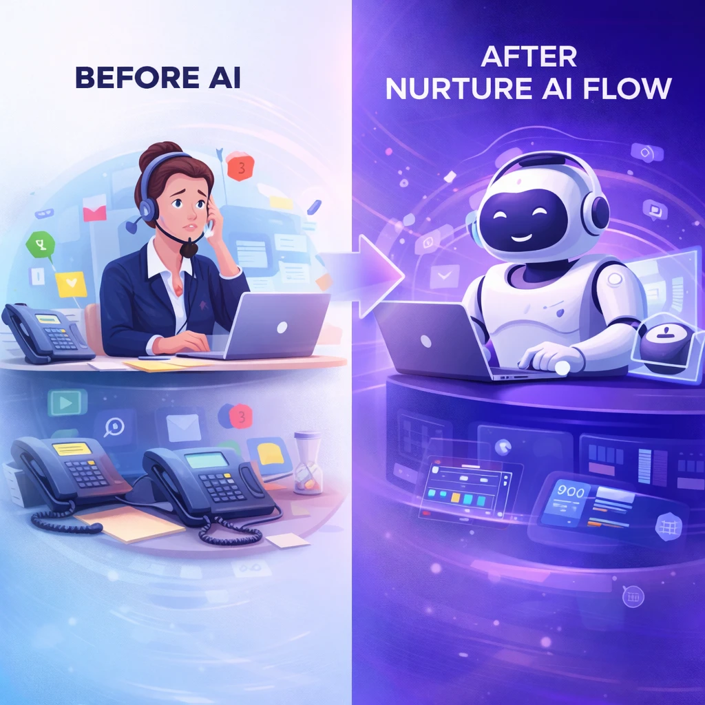 That’s where Nurture AI Flow helps. Our AI voice agents and chat automation respond instantly, answer common questions, and help customers book appointments even outside business hours.