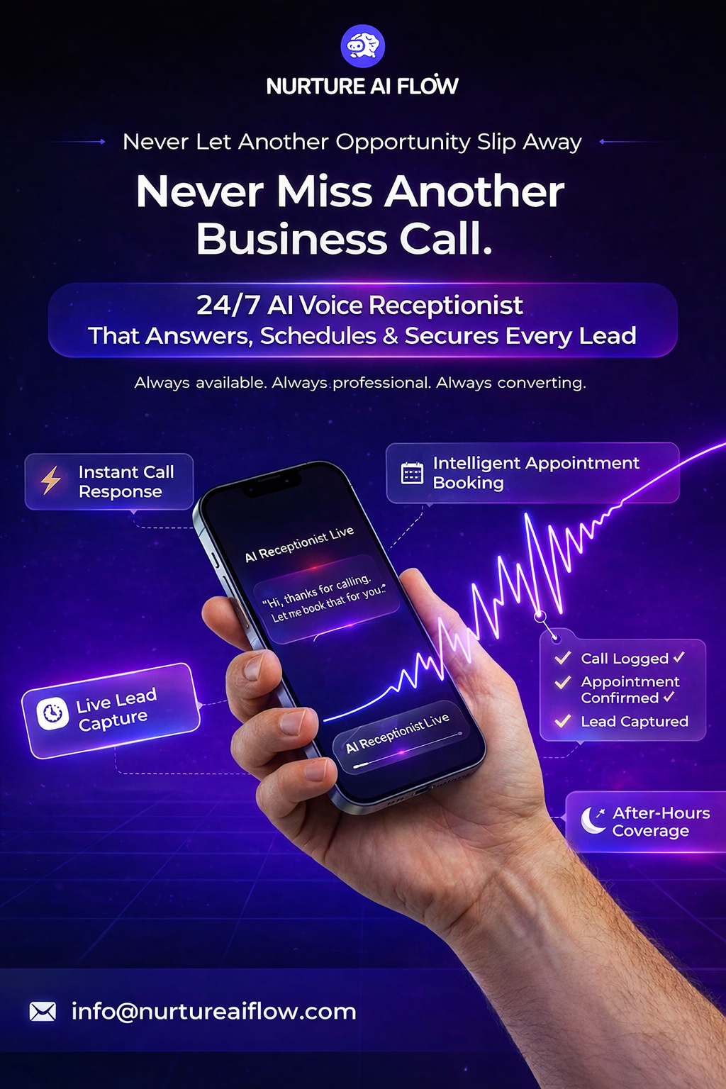At Nurture Ai flow, we specialize in developing advanced AI voice agents that automate and enhance business communication. Our voice agents are powered by natural language processing (NLP) and machine learning, providing seamless, human-like voice interactions. Whether you’re looking to automate inbound calls, improve call routing, or offer 24/7 customer support, our solutions are designed to improve operational efficiency and customer satisfaction.